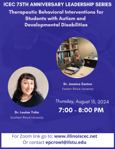75th Anniversary Leadership Series #8 “Therapeutic Behavioral Interventions for Students with Autism and Developmental Disabilities,” Dr. Jessica Zanton, EIU and Dr. Louise Yoho, SIU