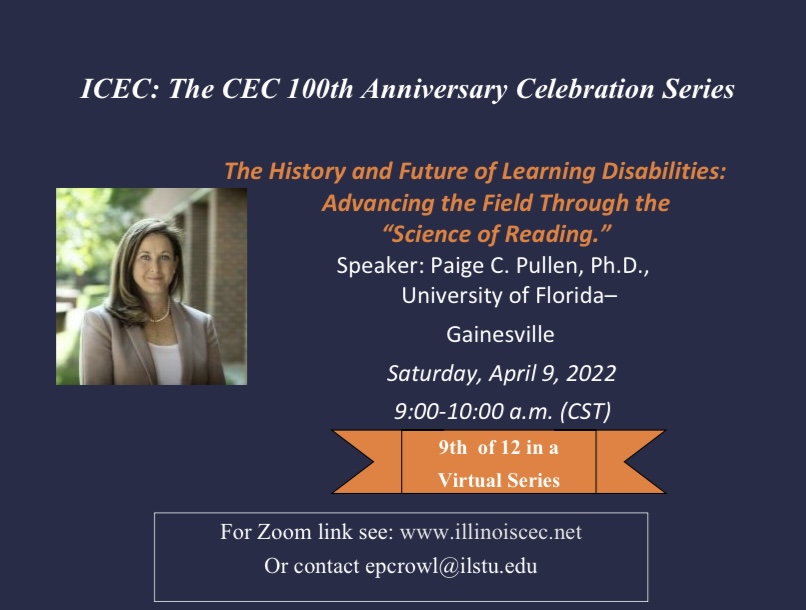 CEC 100th Anniversary Series Dr. Daniel P. Hallahan and Dr. Paige C. Pullen-“The History and Future of Learning Disabilities: Advancing the Field through the ‘Science of Reading’.”