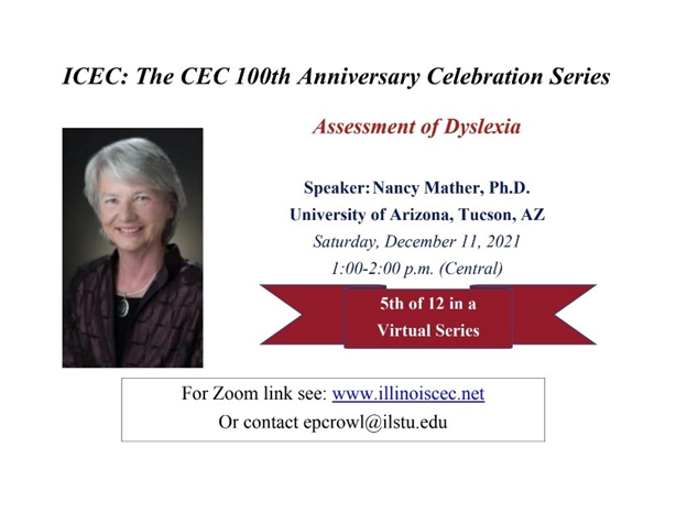 CEC 100th Anniversary Series #5-Dr. Nancy Mather, “Dyslexia Assessment”