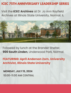 ICEC 75th Anniversary Leadership Series #7 “Visit the ICEC Archives” with April Anderson Zorn, ISU Archivist